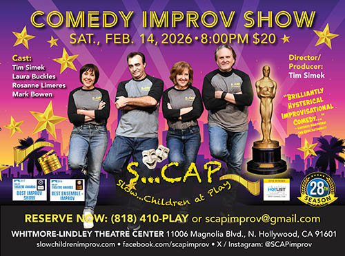 - It’s awards season again! Globes, Oscars, People’s Choice, etc. But the one that stands out above all the rest is The SCAPPIES!!! Yes, we have our own “awards” show. Filled with celebs, characters, music, red carpet, improv and laughter! No long speeches or annoying paparazzi. Just a lot of fun and plenty of laughs!! Join us on February 14th! We won’t even ask “who you’re wearing.”